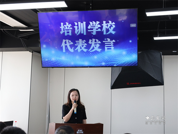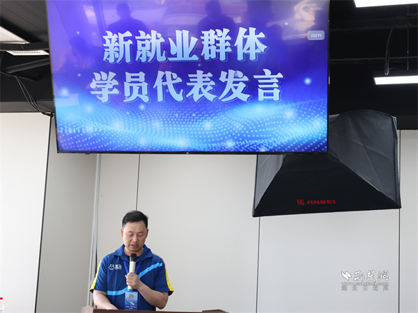 在學校代表發言中,作為武昌區“新興學院”首批教學點,天姿美業職業培訓學校校長蔡文杰介紹,自2022年黃鶴樓街道新就業群體驛站建成,學校已連續4年為騎手提供義剪服務,此次轉型培訓是服務的進一步升級。蔡校長感謝市、區及黃鶴樓街道的信任,并詳解培訓課程、模式與計劃。學校將為考核合格學員頒發雙證,還提供就業創業支持,構建“培訓-考核-就業”全鏈條服務體系。