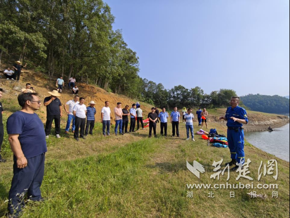 活動第二階段將重心轉至南河水庫泄洪閘口,進入緊張有序的實戰演練階段。機關干部、村(社區)支部書記、派出所民警及荊門市藍天救援隊隊員悉數到場。演練模擬發現人員溺水險情,救援隊迅速響應,展示了從快速評估現場環境、利用專業救生器材(如救生圈、拋繩包)實施岸上救援,到AED(自動除顫器)正確使用方法的全流程標準化操作,完整呈現了“水中救援—上岸急救—生命支持”的應急響應鏈條。參演人員精神飽滿、配合默契,處置流程科學高效,充分檢驗了預案的實用性和多部門協同作戰能力。