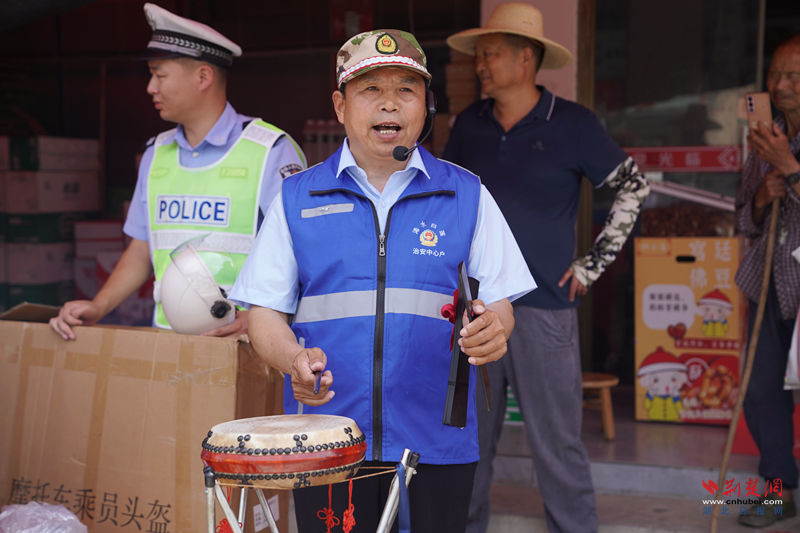 荊楚網(湖北日報網)訊(通訊員 蔡俊)“咚咚鏘,鼓板響!”6月17日上午,浠水縣白蓮鎮街道與長嶺村一改往日的平靜,一場別開生面的“安全協奏曲”正在上演——浠水縣公安局白蓮水陸派出所的民警們將傳統鼓書巧妙融入交通安全宣傳中,用老百姓喜聞樂見的鄉音唱響了文明出行的新篇章。