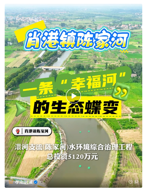 這場不到一年的治理行動,讓9.5公里的陳家河重煥生機,如今站在福銀高速大橋俯瞰,陳家河宛如一條碧綠的絲帶鑲嵌在肖港大地。