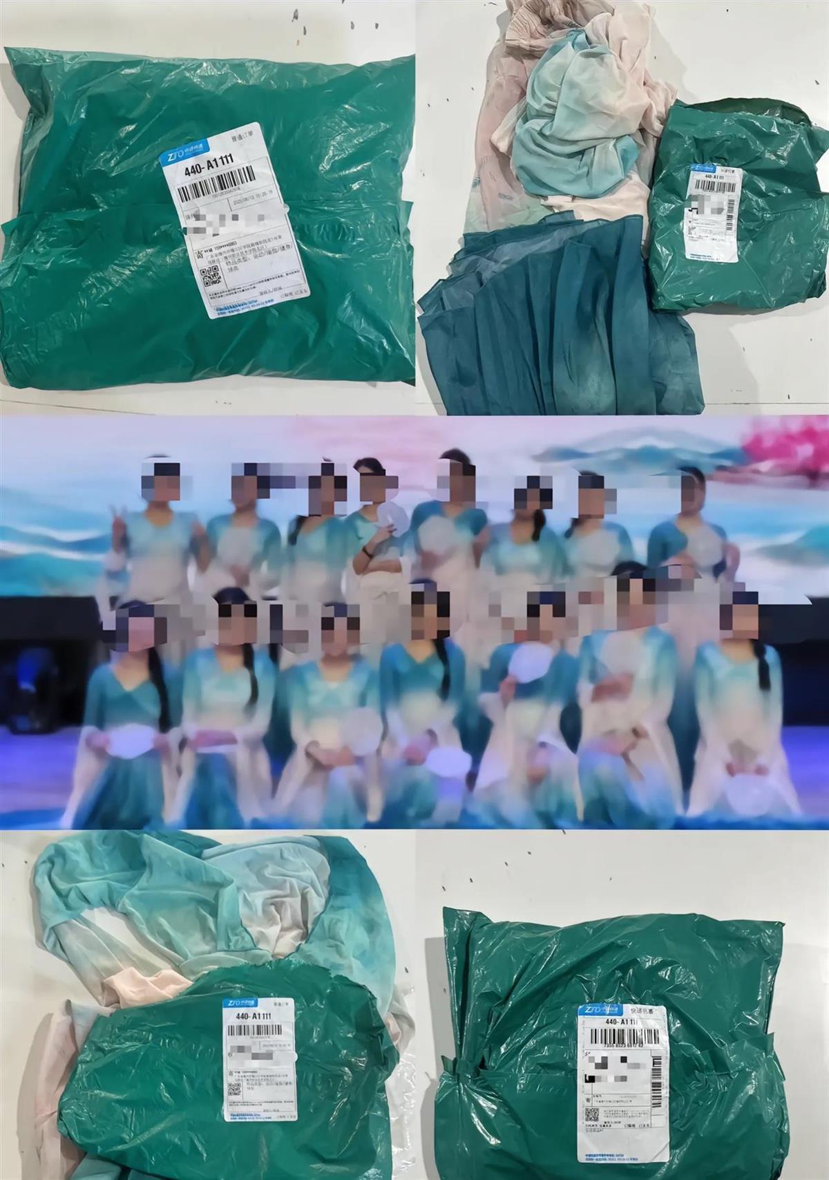 6月17日晚,有山東曹縣商家在社交媒體上反映,廣東梅州一職校有學生購買10套古裝,表演后集體退貨。商家收貨后發現服裝有的吊牌損毀,有的褲裙被踩臟。商家展示的圖片包裹顯示,有多個買家確實購買了同一款古裝,收貨地址為同一職校北區教育學院。