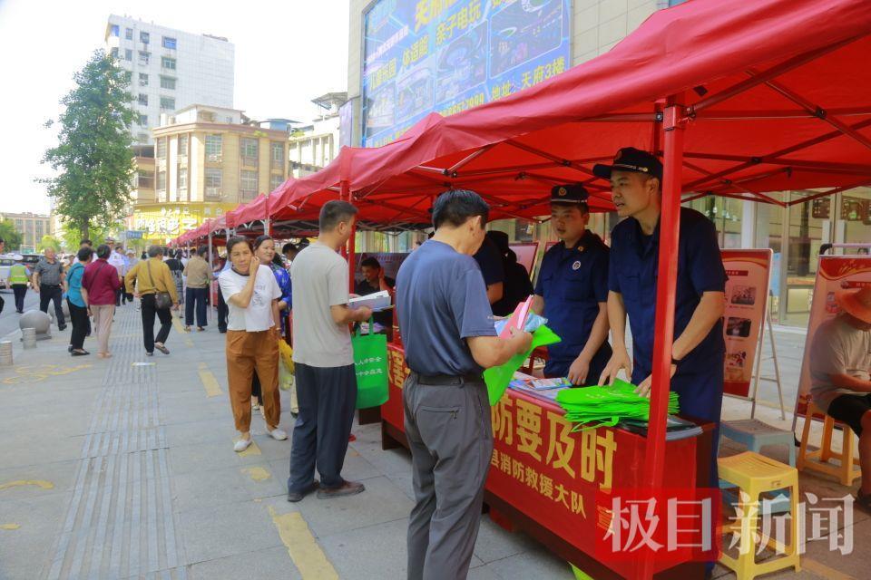 在通山縣文體中心、崇陽縣天府廣場、通城縣銀山廣場等活動現場,各地設立消防知識咨詢臺、火災案例警示教育區、裝備展示體驗區。宣傳人員結合近年來安全生產典型火災案例,圍繞“企業安全生產、電動車消防安全知識、家庭火災預防自救、如何查找身邊火災隱患”等內容,以圖文并茂的宣傳方式向群眾普及消防安全常識及生活中需要注意的安全隱患;通過現場演示消防器材的用途和使用方法,極大地加深了群眾對消防工作的了解和重視。針對群眾關注的火場逃生以及日常防火安全問題,宣傳人員一一熱心解答。一系列內容新穎、宣傳效果實在、易于群眾理解和接受的宣傳方式,吸引了大批群眾圍觀咨詢。