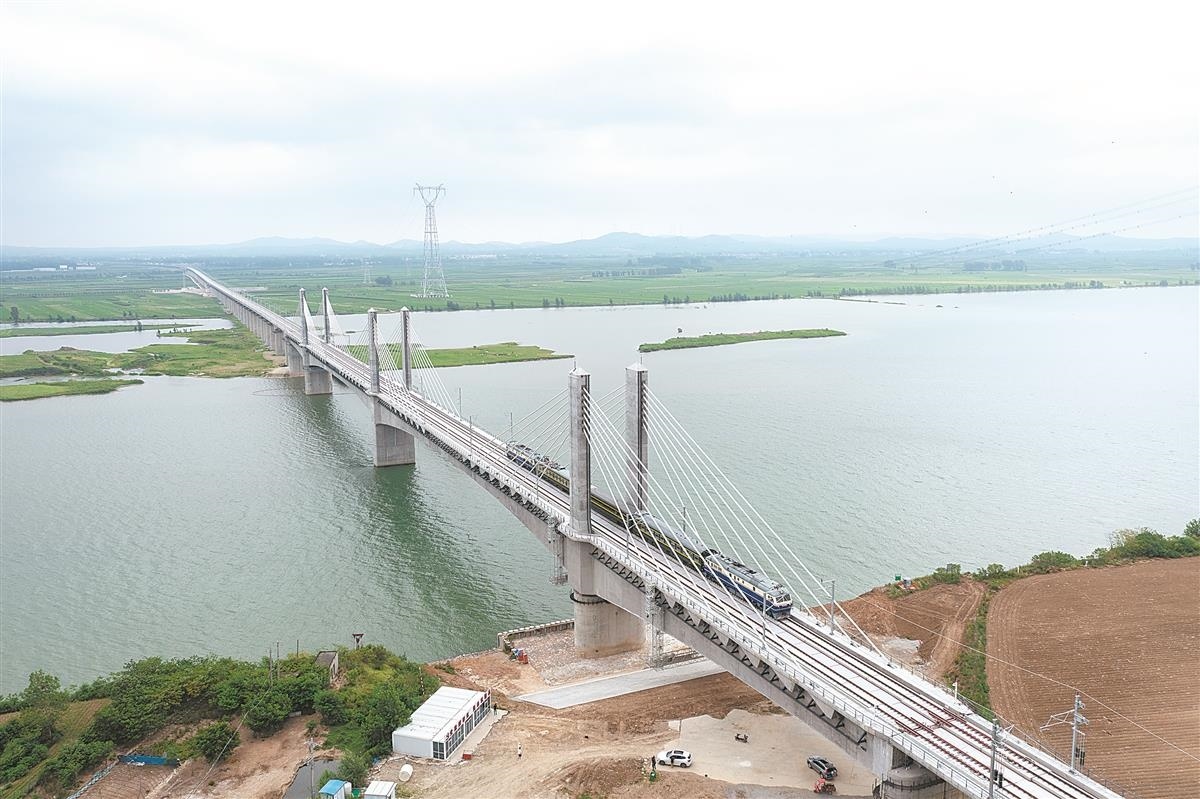 6月18日,檢測列車55163次通過襄荊高鐵宜城漢江特大橋 通訊員李垚駿攝