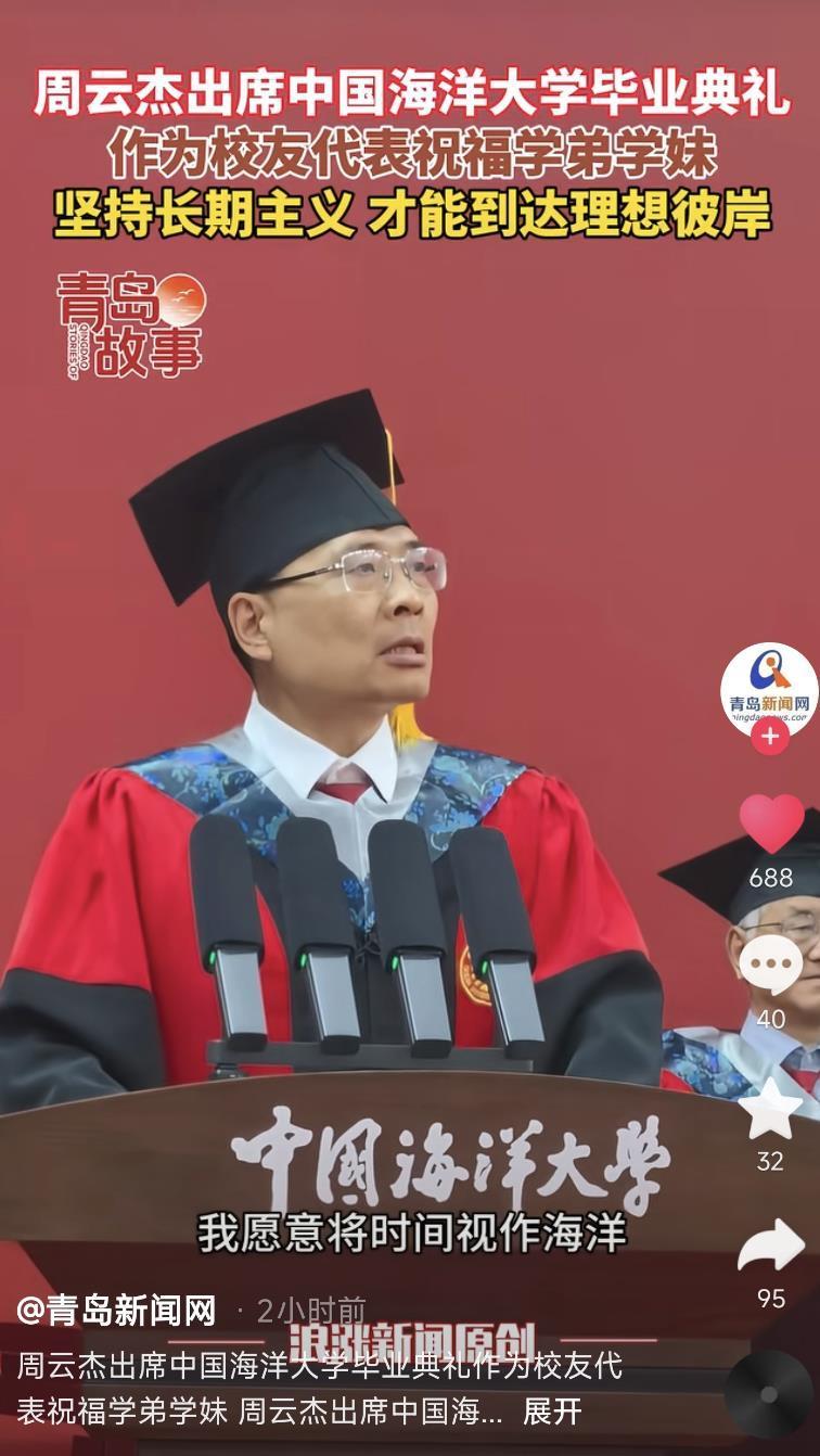 19日上午11時許,極目新聞記者從中國海洋大學方面采訪了解到,當天上午舉行的是2025屆研究生畢業典禮暨學位授予儀式,周云杰此次是作為學校企業管理專業1996級碩士研究生校友代表來發言的,19日下午,該校還將舉行本科生畢業典禮暨學位授予儀式。