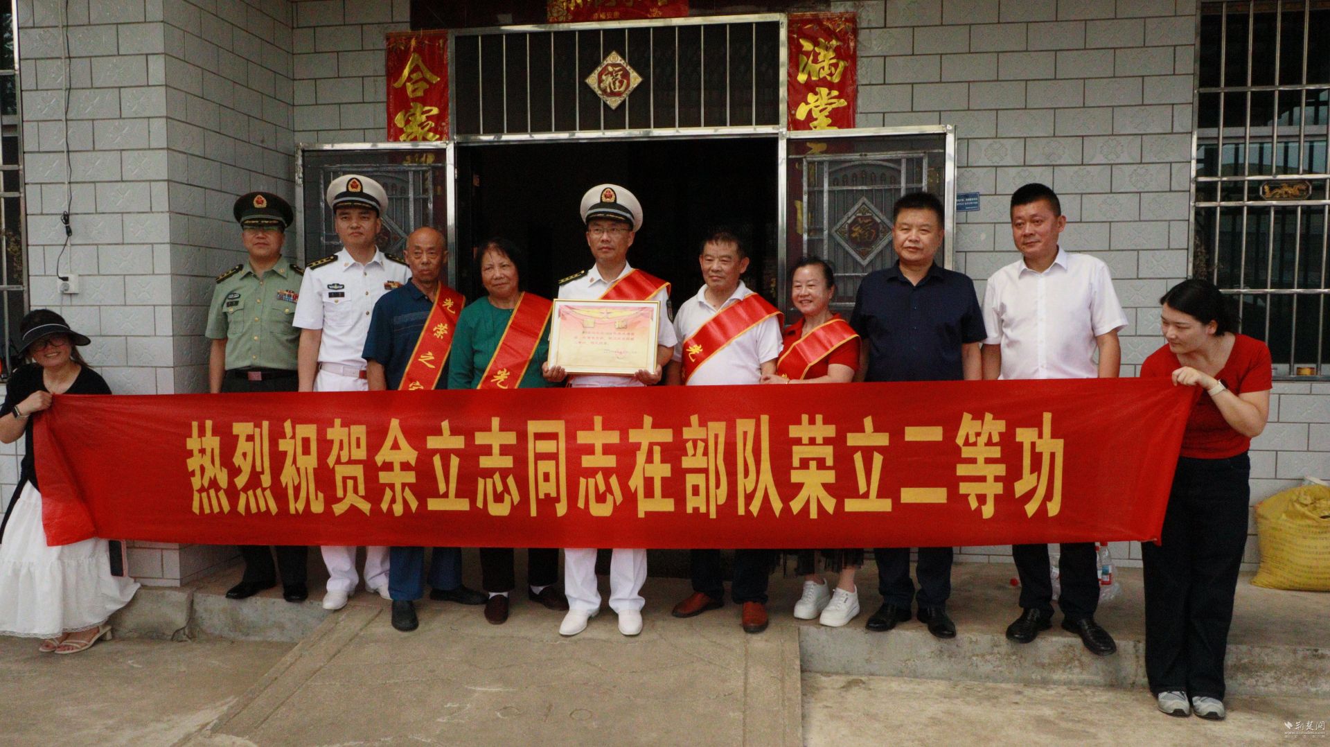 荊楚網(wǎng)(湖北日報(bào)網(wǎng))訊(通訊員常夢星)軍營建功勛,家鄉(xiāng)傳美名。6月18日,團(tuán)風(fēng)縣人武部、縣退役軍人事務(wù)局聯(lián)合海軍某部一行前往總路咀鎮(zhèn)雙河口村,為榮立二等功的現(xiàn)役軍人余立志家庭送去立功喜報(bào)和慰問金,將這份榮譽(yù)與喜悅傳遞到功臣家中。