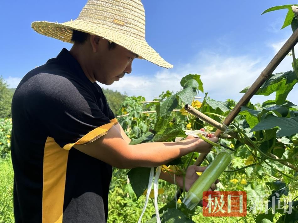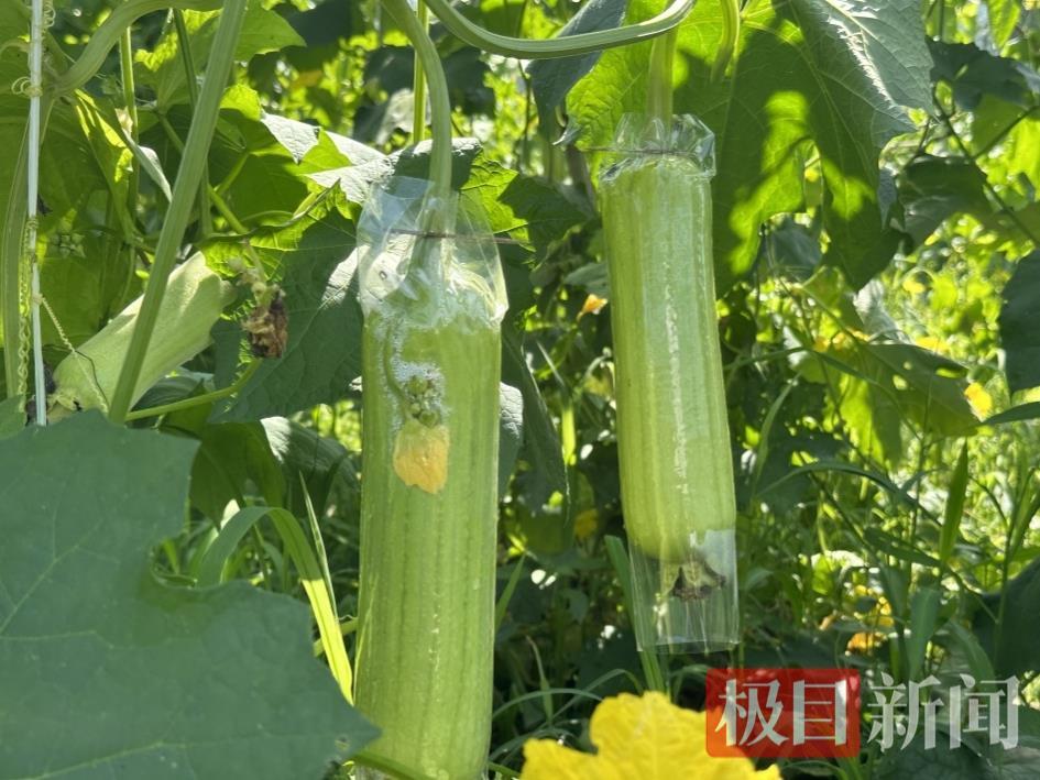走進種植基地,套著防蟲袋的白玉絲瓜垂掛枝頭。據村民程剛介紹,為防止果實被蟲蛀,在絲瓜授粉結果、長至15厘米左右時,就需及時套上防蟲袋。這種白玉絲瓜生長周期短,播種30天就能摘頭茬,一直能采到9月,一年能有5次收獲。首批1萬斤絲瓜已打包成箱,即將“奔赴”廣州、佛山等地,端上千家萬戶的餐桌。