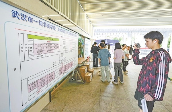 武漢市中考今日開考。6月19日下午,武漢市各考點學校對考生開放,讓他們熟悉考點位置和交通路線。圖為武漢第一初中學苑考點,中考考生表情輕松淡定。楚天都市報極目新聞記者李輝攝