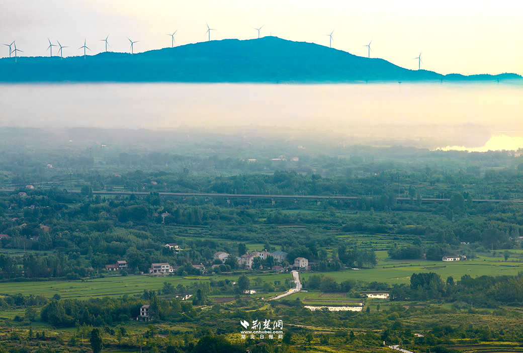 晨光中,登上白兆山極目遠眺,山巒起伏,風車林立,云霧繚繞,宛如一幅美麗畫卷。記者劉建維攝