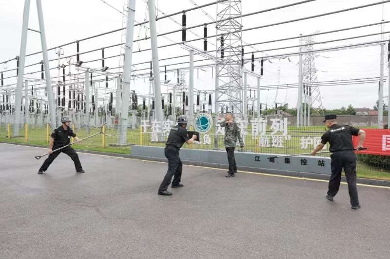 演練現場不僅展示了人員過硬素質,更凸顯了變電站強大的技防與物防體系。變電站嚴格執行多重門禁準入制度,高墻與電子圍欄構筑物理屏障,高清攝像頭與110智能聯動報警裝置實現全域無死角監控預警。安保人員配備的先進防暴裝備,確保在關鍵時刻能有效控制事態。荊州公司所屬變電站的安防,已形成人防、物防、技防深度融合的立體防護網,讓任何非法闖入企圖都無處遁形。