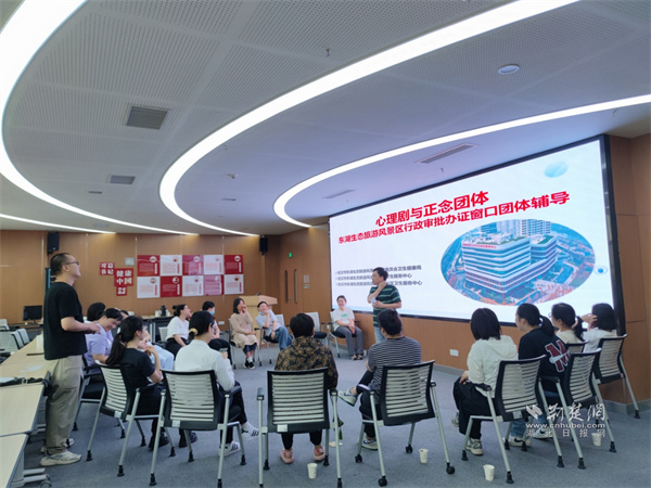 荊楚網(湖北日報網)訊(記者 李燕 通訊員 孫琳 賈子劍)6月19日下午,武漢市武東醫院聯合東湖風景區第一社區衛生服務中心,面向東湖生態旅游風景區公安分局民警及行政審批辦證窗口工作人員,開展“心靈舞臺?正念調心”心理劇與正念團體體驗活動,幫助一線人員緩解工作壓力,提升情緒管理能力。