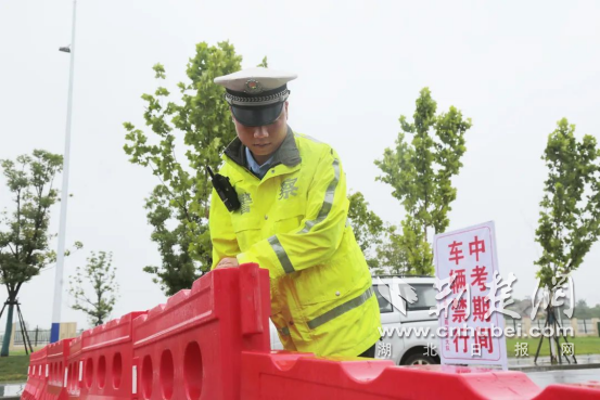 考試當天,交通管理大隊在考點周邊重點路段設置臨時管控標志,加強現場指揮疏導,全力保障送考車輛通行順暢。