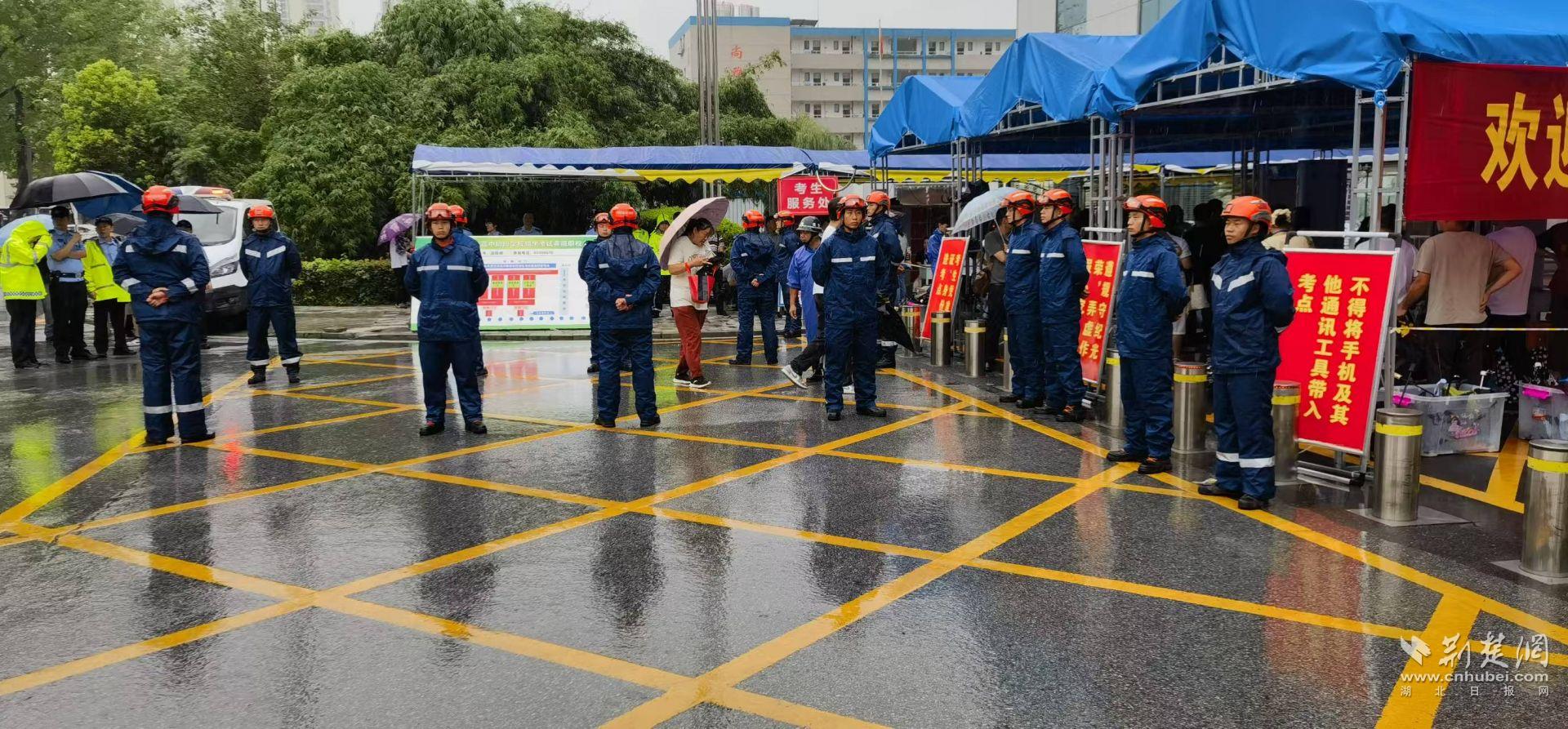 在該考點,20余名國家華中區域應急救援中心湖北機動隊隊員同樣堅守崗位。據悉,武漢市應急管理局未雨綢繆,協調50名國家華中區域應急救援中心湖北機動隊隊員,調配1臺大型排澇搶險裝備,于6月20日至22日在黃陂區前川、盤龍城等考點開展應急保障工作,重點對考點及周邊開展安全檢查巡查與保衛,隨時應對突發汛情、積水內澇等險情,全力保障考點周邊安全暢通。