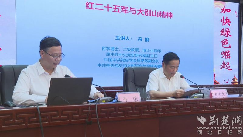 學習會現場,馮俊以《紅二十五軍與大別山精神》為題,從紅色英山與紅二十五軍、紅二十七軍、紅二十八軍、紅二十五軍與長征精神、大別山精神的凝練概括和宣傳闡釋、弘揚大別山精神,建設和發展好新時代的大別山等多維度深入闡釋。他表示,“大別山精神和偉大建黨精神一脈相承,是偉大建黨精神的具體體現。習近平總書記關于大別山精神的系列重要論述,是理解、挖掘和凝練大別山精神的鑰匙。”