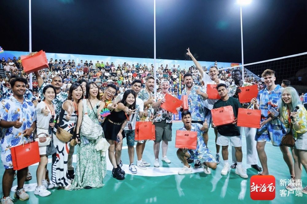 來自12個國家的“海南旅游國際推薦官”齊聚海南“村VA”賽場體驗打排球。主辦方供圖