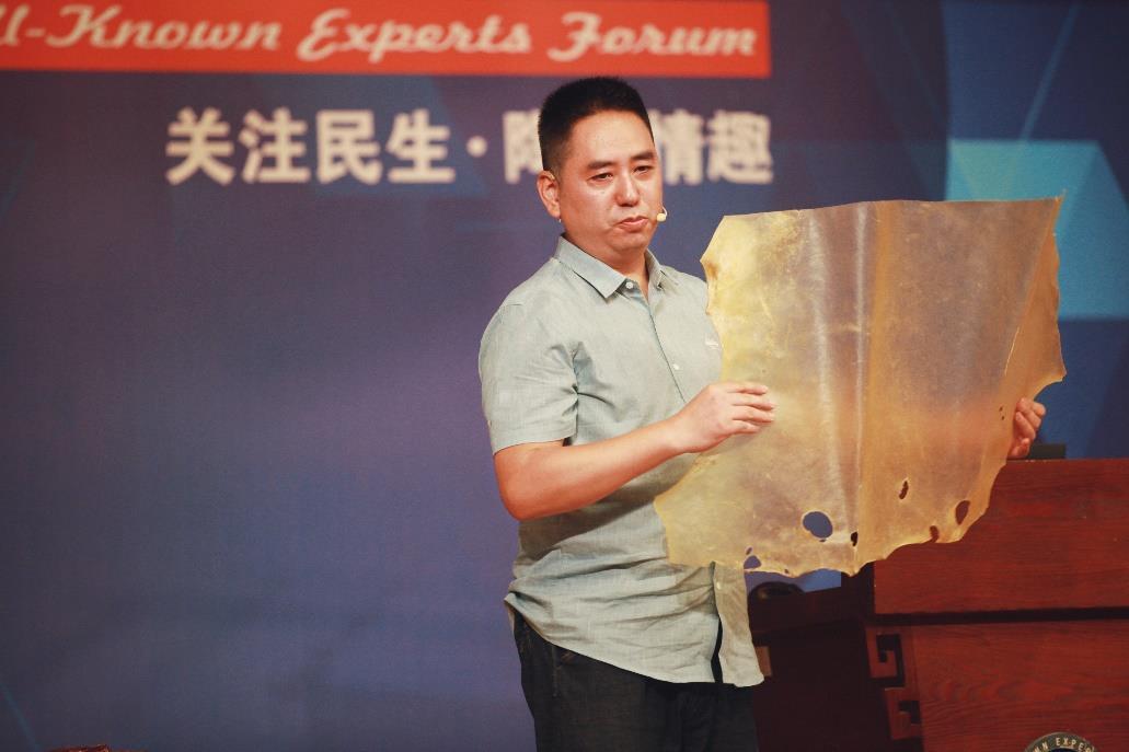 潘教授表示,皮影戲是中華民族大眾群體智慧的結晶,是為滿足生產勞動、人生禮儀、節日等風俗社會需求而創造的藝術形式。一個完整靈活的皮影人物通常由頭顱、胸、腹、雙腿、雙臂、雙肘、雙手等十一個部件組成,以便動作靈活。皮影戲中的道具也別具特色,兵器、桌椅、景片等不僅在造型上遵循藝術美學,更在實際表演中發揮著重要作用——兵器可暗示人物身份,桌椅體現人物地位,景片烘托劇情氛圍等。潘教授表示,皮影創作所用的工具和材料多為隨手可得之物,體現了農村自然經濟的地域性特征,展現出勞動人民的創造力與智慧。它不僅反映了中華民族的宇宙觀、美學觀等,更承載著民族精神與地域文化特色。潘教授還提及了皮影戲的劇本——影卷,由文人編寫卻由民間藝人演唱,演出時無需演員背臺詞,只需“照本宣科”,這種特殊的藝術傳承模式進一步彰顯了皮影戲的獨特文化價值。