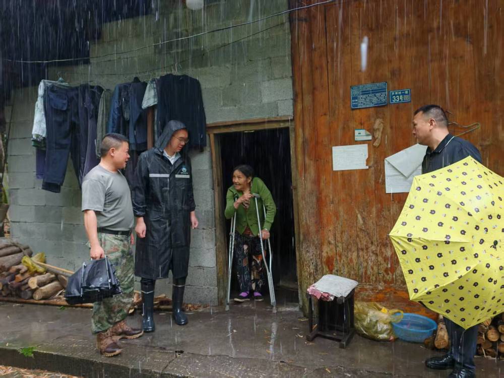 6月19日,當地干部正在入戶轉移鶴峰縣太平鎮蘆坪村汪家河受災群眾。新華社發