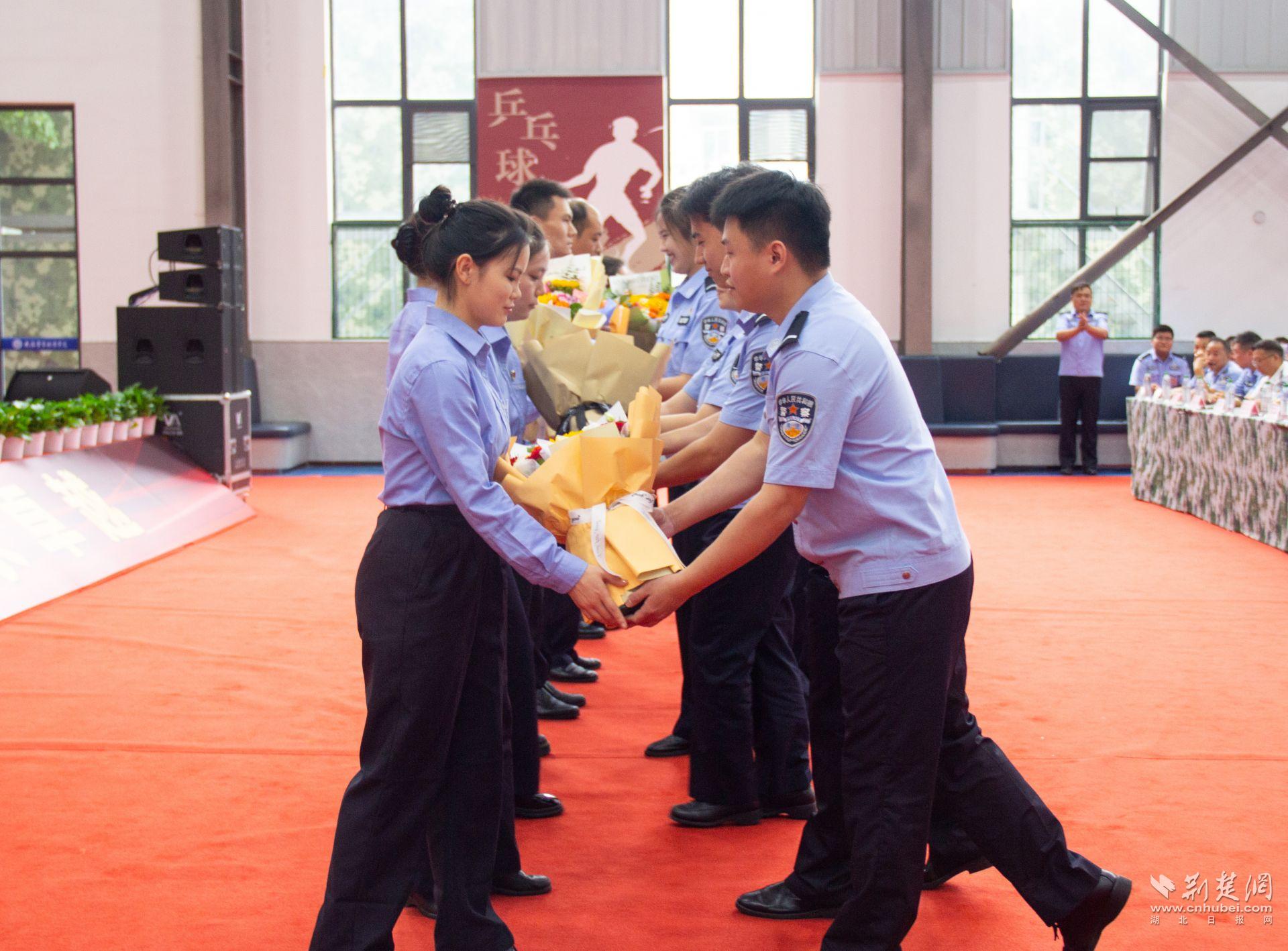 武漢警官職業學院黨委委員、副校長李祖義宣讀了《武漢警官職業學院關于表揚2025屆優秀畢業生的通知》;校領導為畢業生代表頒發畢業證書,為優秀畢業生代表頒發榮譽證書;優秀畢業生代表分別為教師代表、政治輔導員代表贈送鮮花。