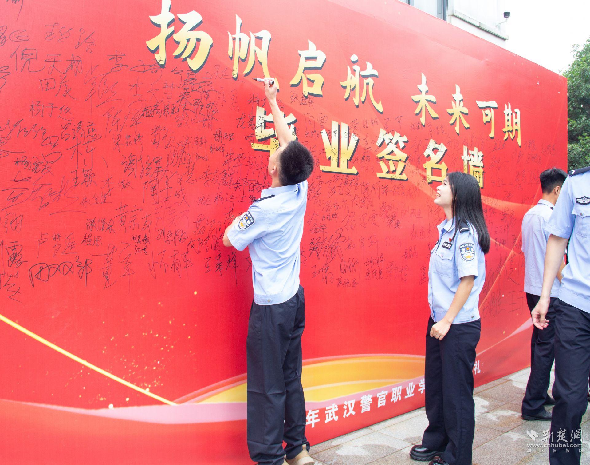 畢業生在簽名墻上簽名。肖慧婷 攝