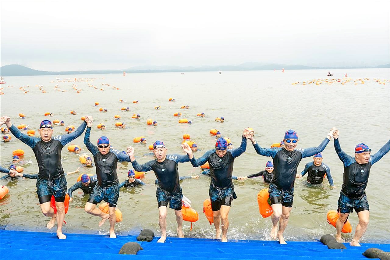 東湖集中測試賽過程中,連日的大雨停歇,氣溫適宜。各方隊先在岸上列隊、檢查裝備,然后在工作人員引導下有序下水,以湖面上的4個巨型浮標為標志往返,全程約2000米。