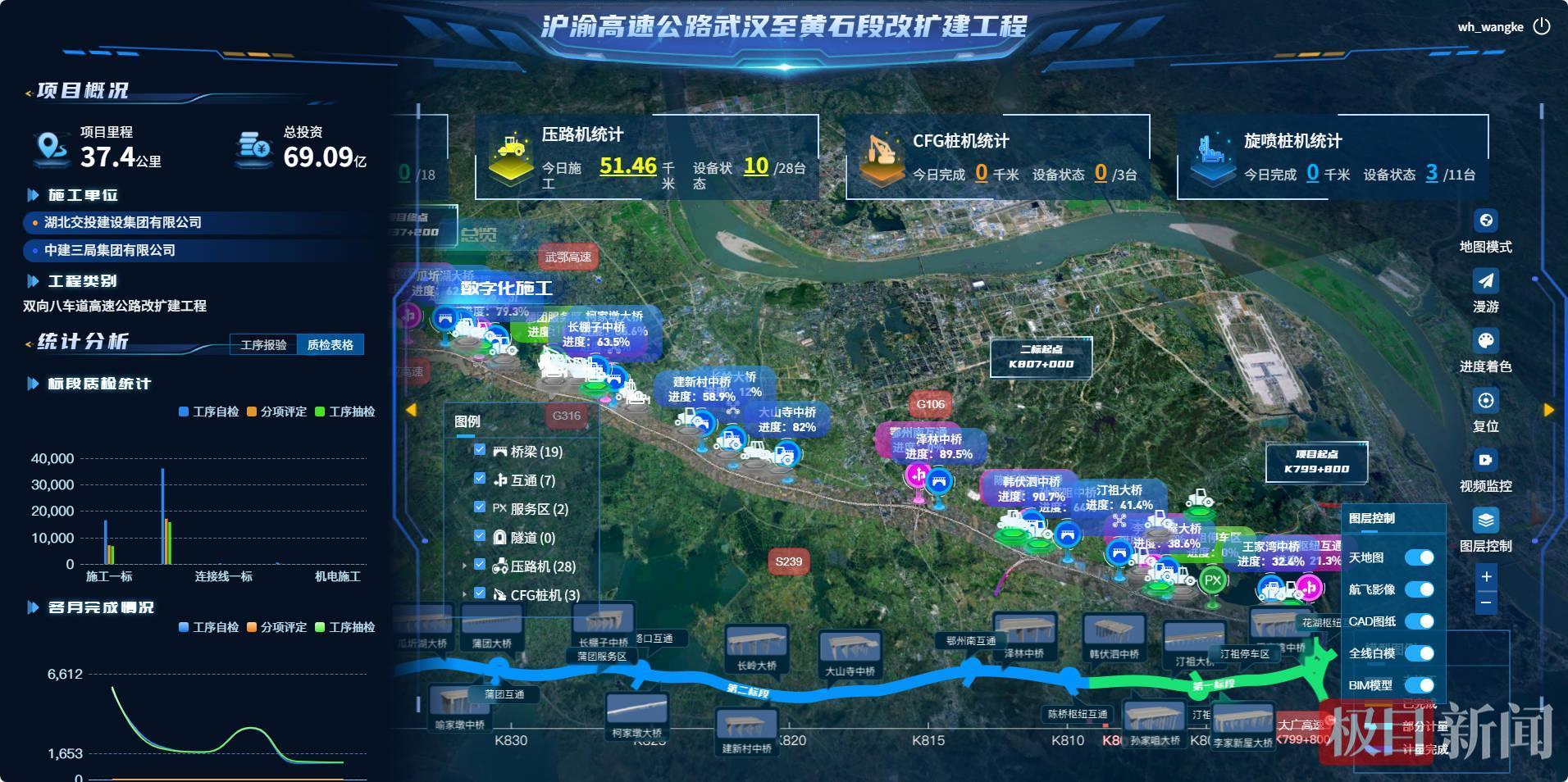 進入6月,驕陽似火,湖北省首條高速公路——武黃高速改擴建工程進入攻堅階段。鄂東建設公司以打造“武黃改擴建 交投智慧線”為目標,正通過“四改八”智慧化改擴建工程,將這條路融入智能建造技術應用的生動圖景。