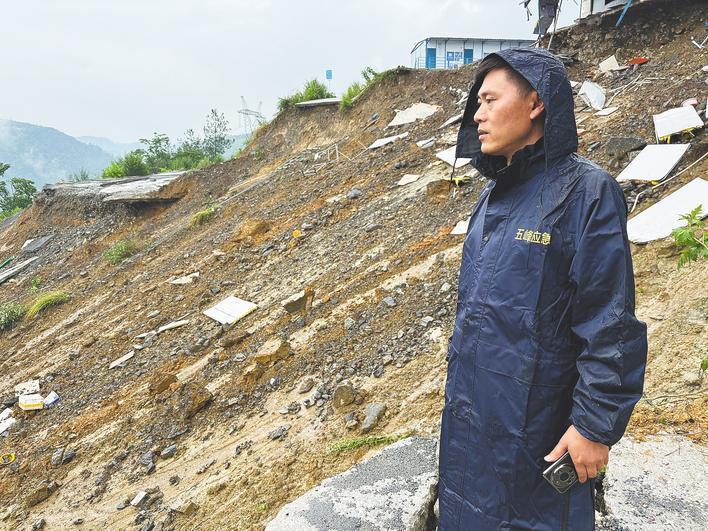 這一看,果然發現了大問題。“白天的幾條縫隙已撕裂成豁口,隨時都可能出現山體塌方!”韓玉龍迅速向灣潭鎮應急指揮部報告該情況,鎮應急指揮部第一時間叫應中建鐵投路橋有限公司宜來高速六標三工區做好人員轉移準備。