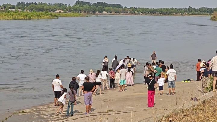 多個網絡視頻顯示,22日下午,洛陽市孟津區白鶴渡口東石灘區河邊,多人手牽手搭成人鏈施救,其中一名男子跳入水中,緩緩將落水者送到岸邊,再由岸上人員帶上岸。