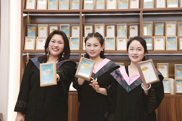 6月20日,武漢工商學(xué)院舉行2025屆學(xué)生畢業(yè)典禮,5115名畢業(yè)生收到了一份別出心裁的畢業(yè)禮物——銀杏葉青春相框,裝著金黃銀杏葉的相框。據(jù)悉,去年深秋,學(xué)弟學(xué)妹們細(xì)心收集落葉并珍藏至今。今年畢業(yè)季,學(xué)弟學(xué)妹、畢業(yè)班輔導(dǎo)員和學(xué)院黨總支書記親手在每一片銀杏葉上寫下畢業(yè)祝福,相框背卡上還印有該校校長孔建益教授題寫的“努力更幸運 未來多喜幸”寄語和簽名。
