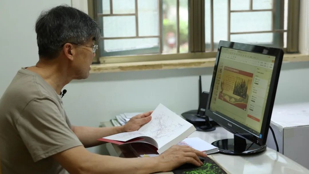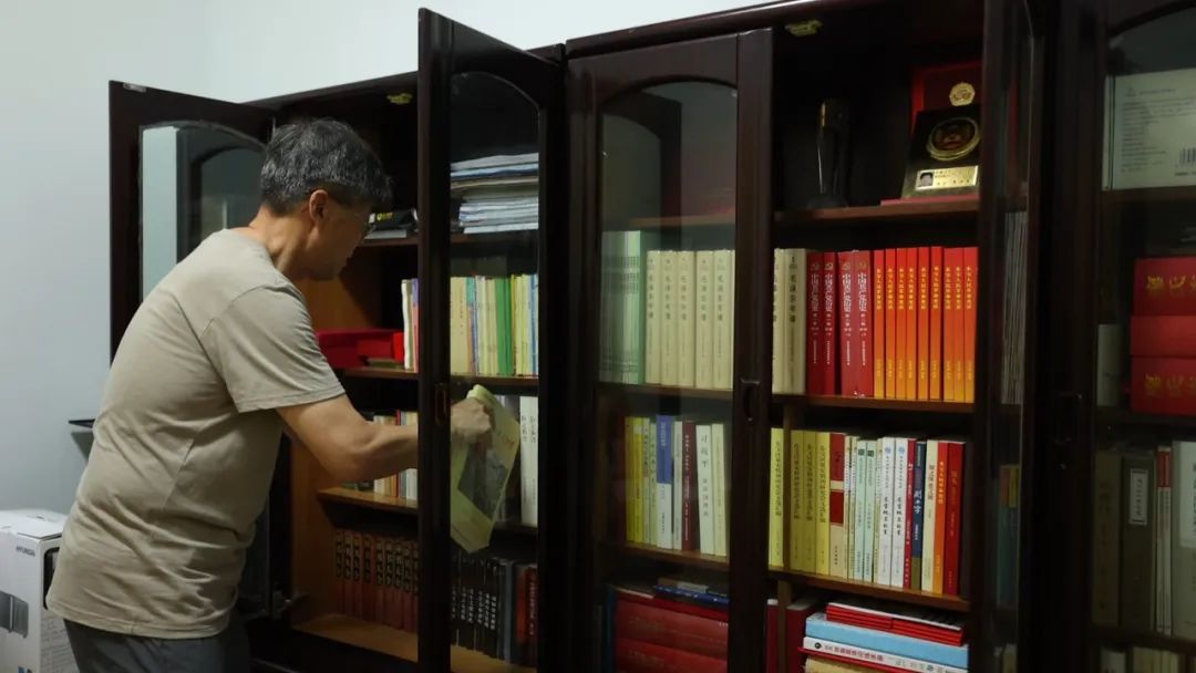 廖祥軍在家里查閱紅色故事