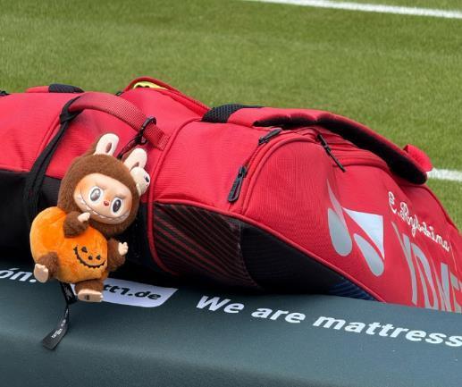 此外,萊巴金娜也有拉布布。在一張賽場邊的照片中可見,一只球包上掛著一個棕色的拉布布,球包上的名字正是萊巴金娜。看來,這位網壇著名的“超級淡人”也悄悄迷上了拉布布。