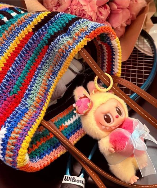 鄭欽文已經掛上了拉布布。在前不久的女王杯上,眼尖的球迷從轉播鏡頭中發現,鄭欽文的球包上掛著一個拉布布。“Queen文”連比賽時都帶著它一起出場,可見是真愛了。