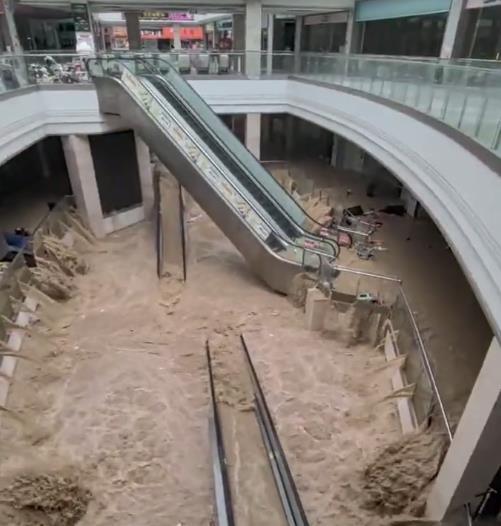 24日中午,事發商場多名商戶向記者證實了此事,其中一位商戶說:“短短幾分鐘洪水就漲上來了,來不及搬離貨品,損失很大。”