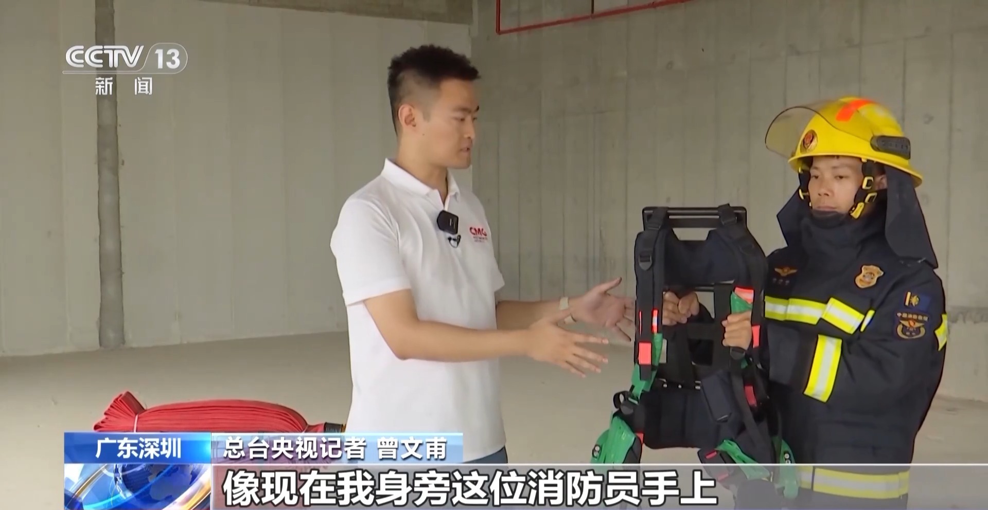 總臺央視記者 曾文甫:在高層建筑火災救援任務當中,消防人員通常需要攜帶一定重量的救援物資前往火災事發地點,而這也給他們的登高作業帶來不小的挑戰。現在為了應對這樣的難題,像我身旁這名消防員手中拿著的這套叫作“外骨骼助力系統”的裝備就能發揮重要的作用。