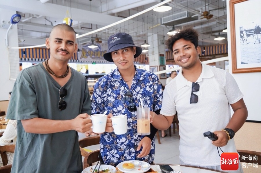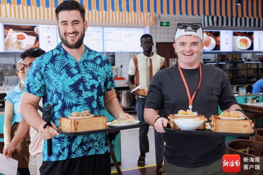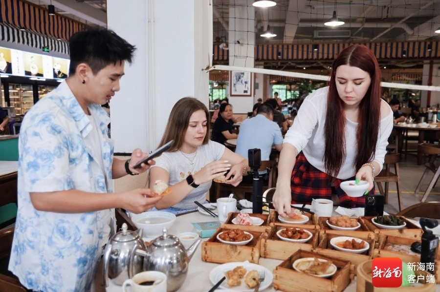 茶園里,時光仿佛放緩。老茶客們圍坐閑談、讀報;食客熟稔地挑選茶點。外國博主們也入鄉隨俗,落座或排隊。一杯醇厚海南咖啡、一碗醬香彈滑的腌粉,配上晶瑩剔透的蝦餃、斑斕糕的清香、軟糯入味的鳳爪,這些尋常茶點成了他們品讀海南生活的窗口。