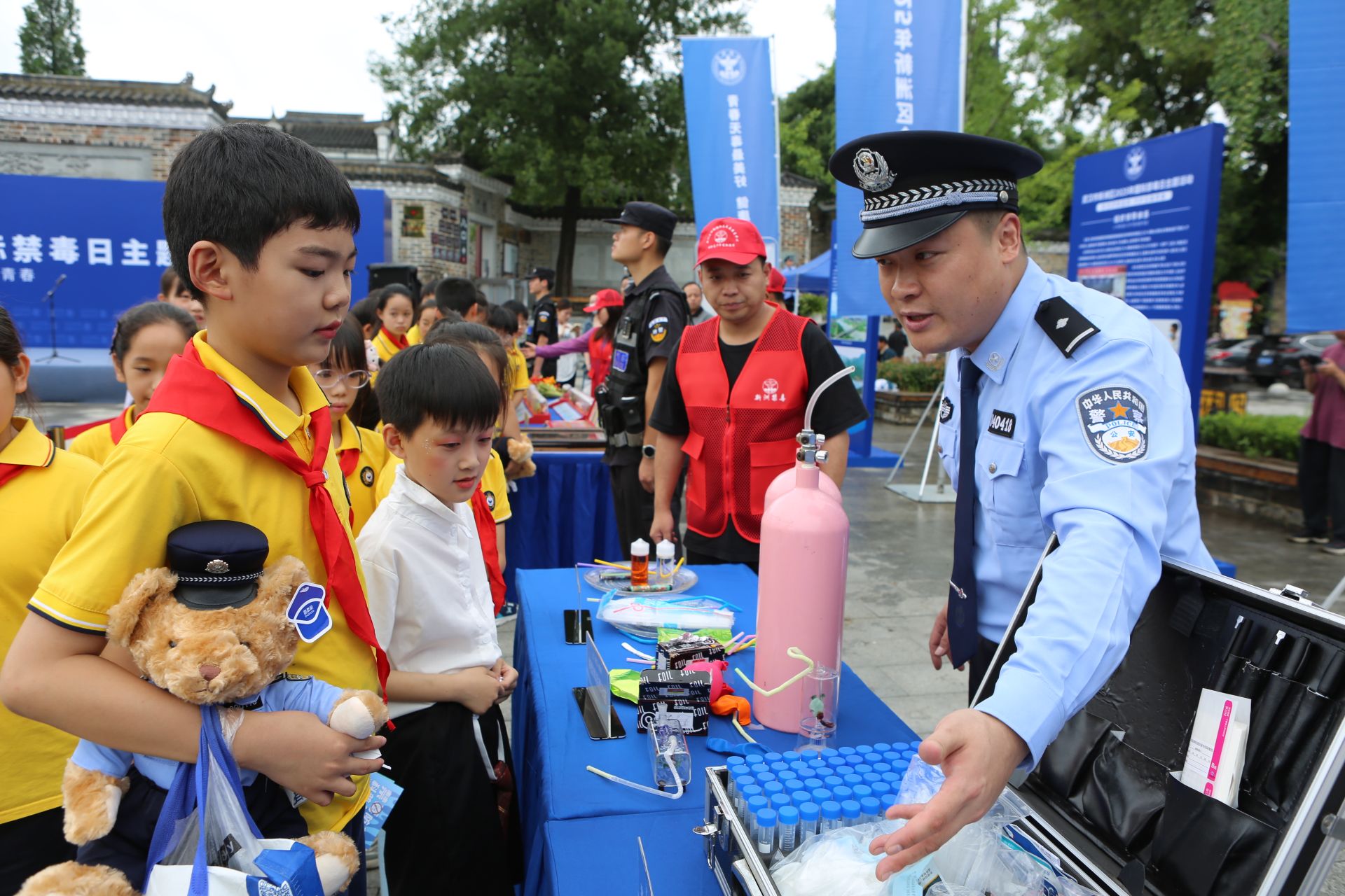禁毒宣傳展示區民警給孩子科普知識。通訊員供圖