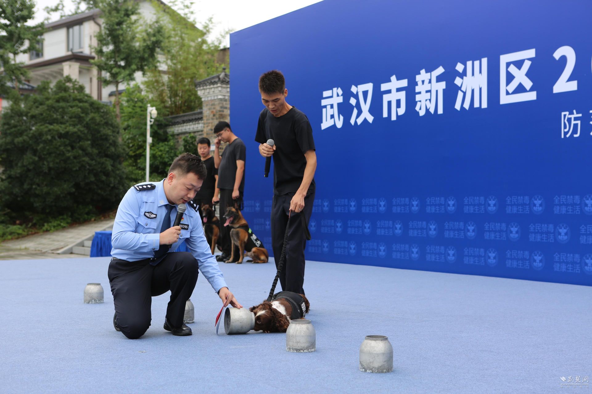 緊接著,警犬“明星”閃亮登場。巡邏犬“凱撒”如離弦之箭般騰空躍起,身姿矯健;緝毒犬“包子”化身“偵探”,在被學生打亂的鐵罐中,精準嗅出藏毒容器,贏得陣陣掌聲。