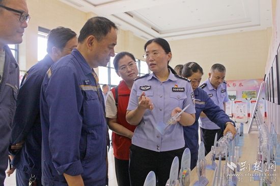 “珍愛生命、拒絕毒品……”活動現(xiàn)場,全體人員集中宣讀禁毒誓詞,一句句鏗鏘有力的誓言在報告廳內(nèi)不斷回蕩,傳遞孕育著“全民禁毒、健康生活”的種子。隨后,大家在宣傳橫幅上簽名,并在民警的講解下,通過毒品仿真模型近距離了解毒品種類形態(tài),深刻認(rèn)識毒品危害。