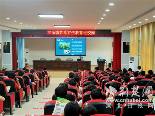 當(dāng)天上午,鐘祥市豐樂(lè)鎮(zhèn)社區(qū)戒毒康復(fù)中心工作人員、派出所民警走進(jìn)豐樂(lè)中學(xué),開展禁毒知識(shí)講座、參觀仿真毒品、發(fā)放宣傳手冊(cè)等形式多樣、內(nèi)容豐富的禁毒宣傳教育活動(dòng),提升青少年識(shí)毒、防毒、拒毒意識(shí)。