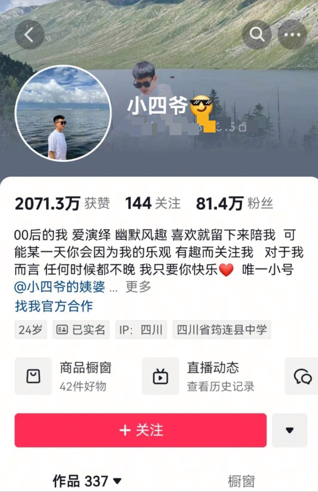 “小四爺”是短視頻平臺上頗有名氣的搞笑博主,在其自我簡介中,稱自己愛演繹、幽默風趣,也通過各種搞笑的演繹收獲了82.4萬的粉絲量。他突然在網絡上消失之后,不少網友都以為他賺夠了,退網了,沒想到竟然是落網了,實在是令人震驚又唏噓。
