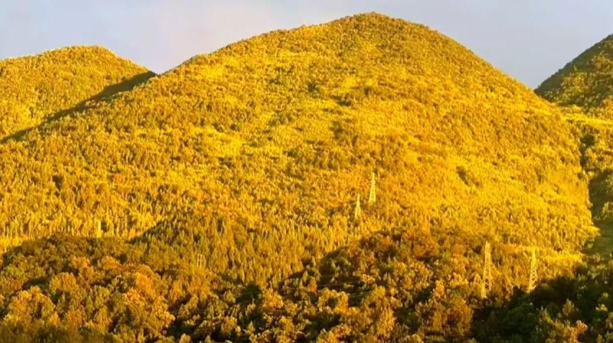視頻顯示,在城區后面的山上,山體呈現出金色,非常美麗壯觀。