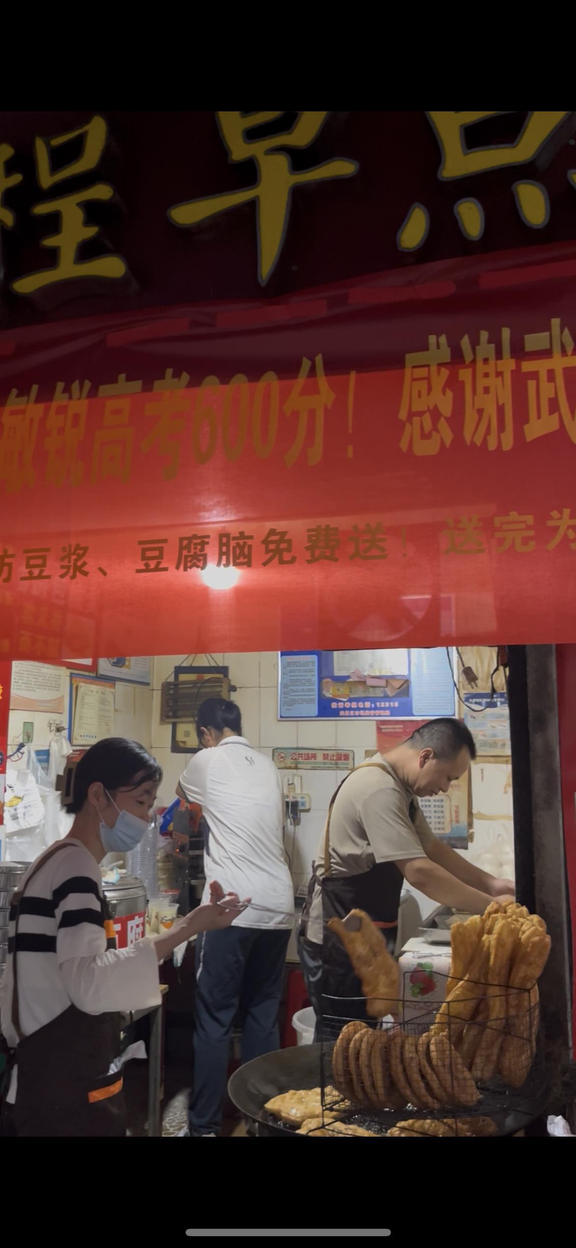 “熱烈祝賀咱閨女程敏銳高考600分,今天過早的街坊豆?jié){豆腐腦免費(fèi)送!送完為止!”這張橫幅掛在一家名為“小程早點(diǎn)”的店門上!