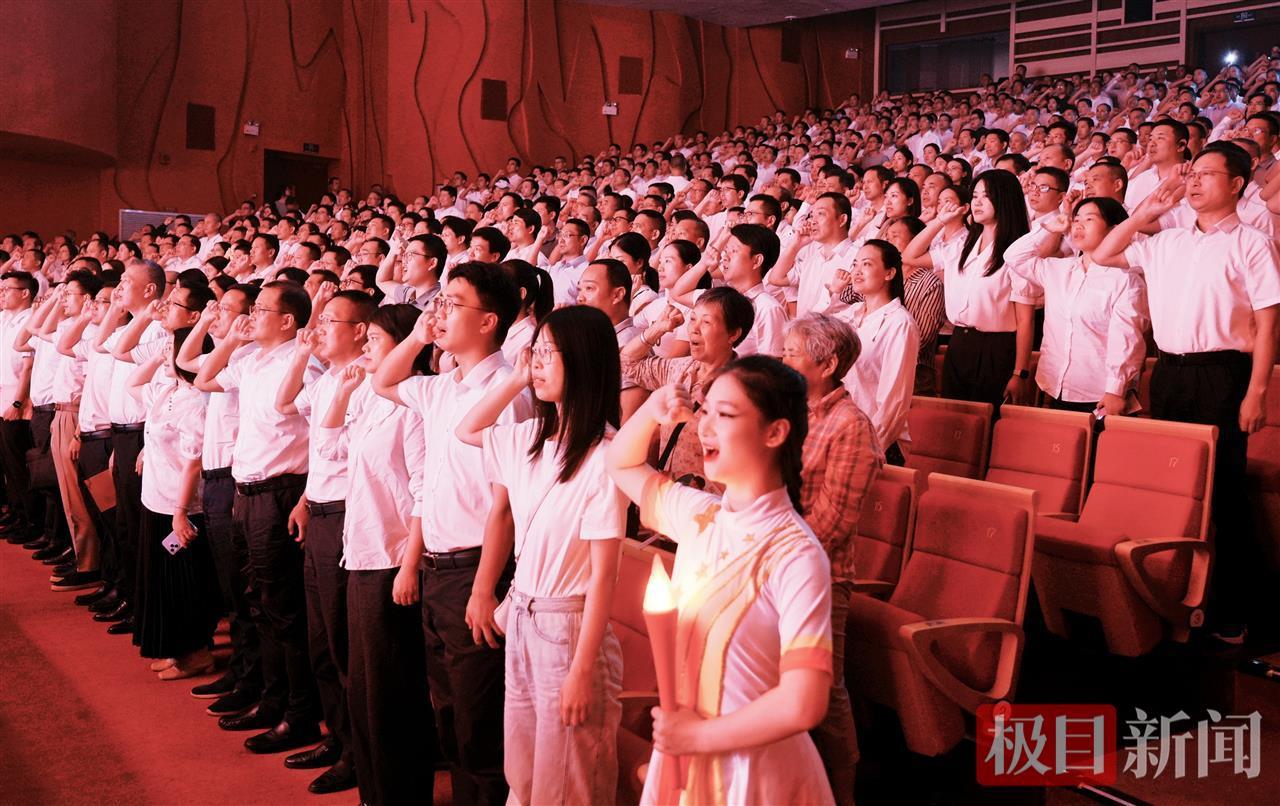 “永葆本色,弘揚清風正氣!”6月26日晚,潛江市曹禺大劇院里回蕩著廉政誓詞,臺上演員與臺下黨員干部一同舉起右手宣誓,“八項規(guī)定的時代回響”主題音樂黨課接近尾聲。