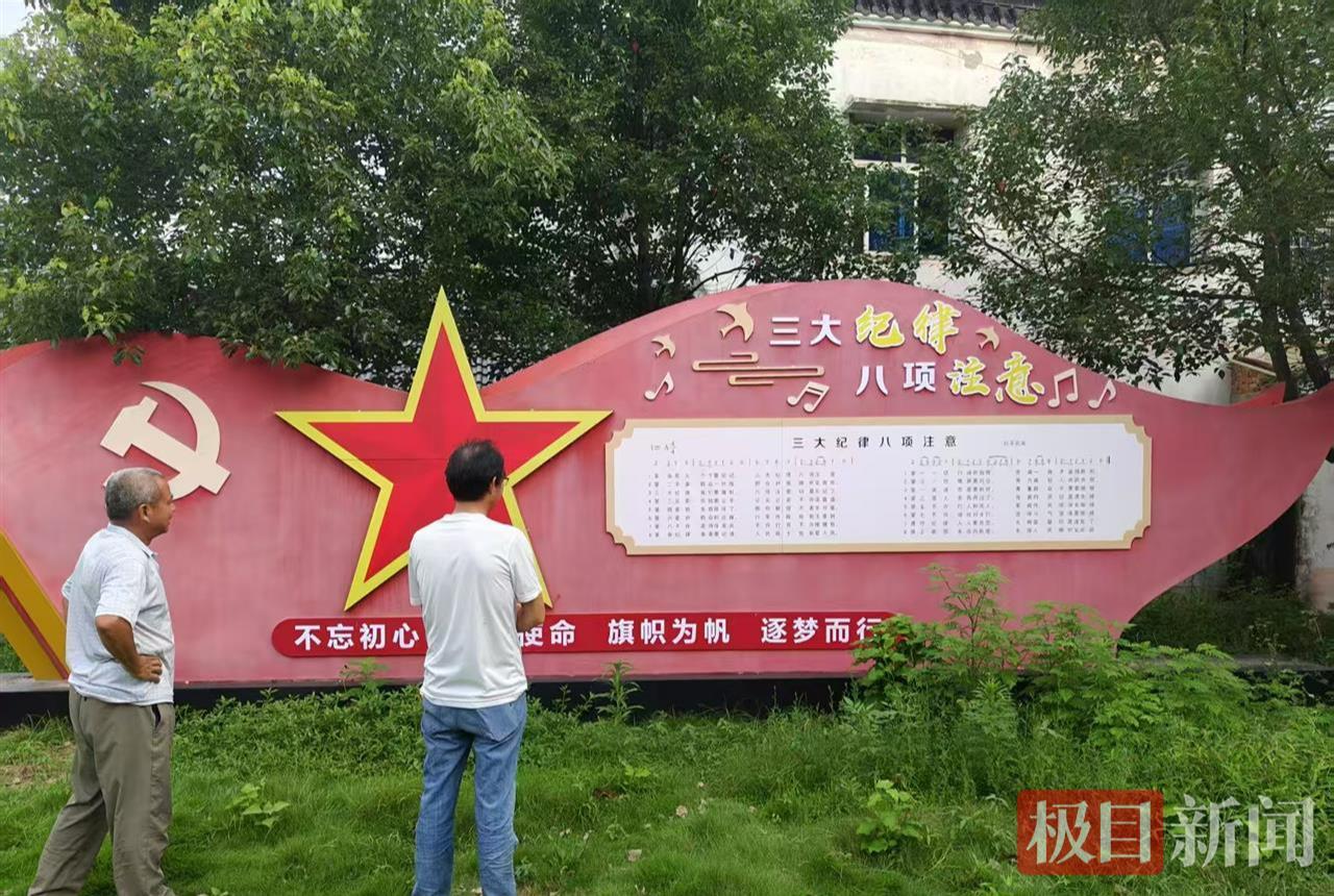 劉華清家鄉(xiāng)大悟縣呂王鎮(zhèn)劉院村村頭豎立的《三大紀(jì)律八項注意》歌曲