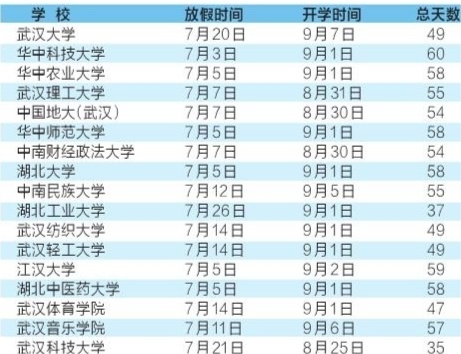 誰放得最長?誰放得最短?極目新聞為大家匯總整理了2025年武漢部分高校的暑期放假時間表。據不完全統計,武漢各所高校暑假長短差異較大,最長的有60天,短的有30多天。