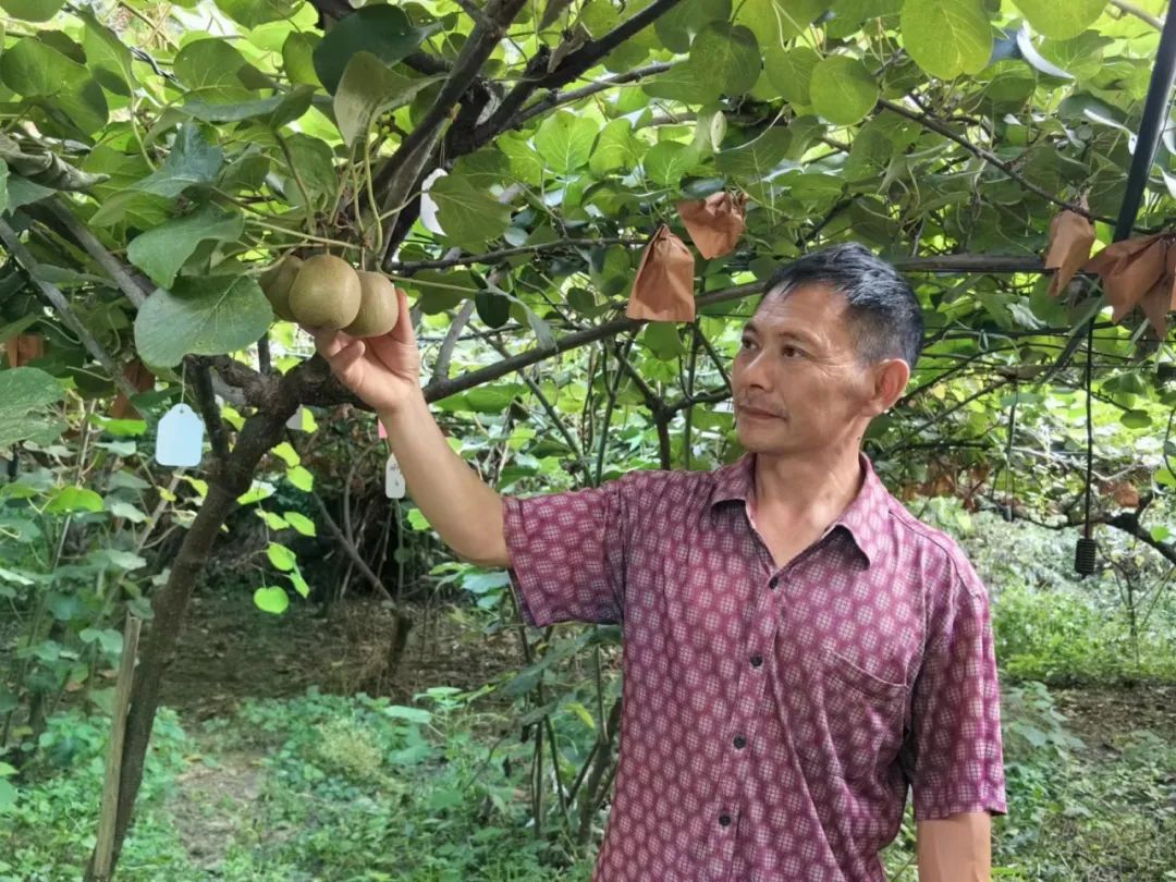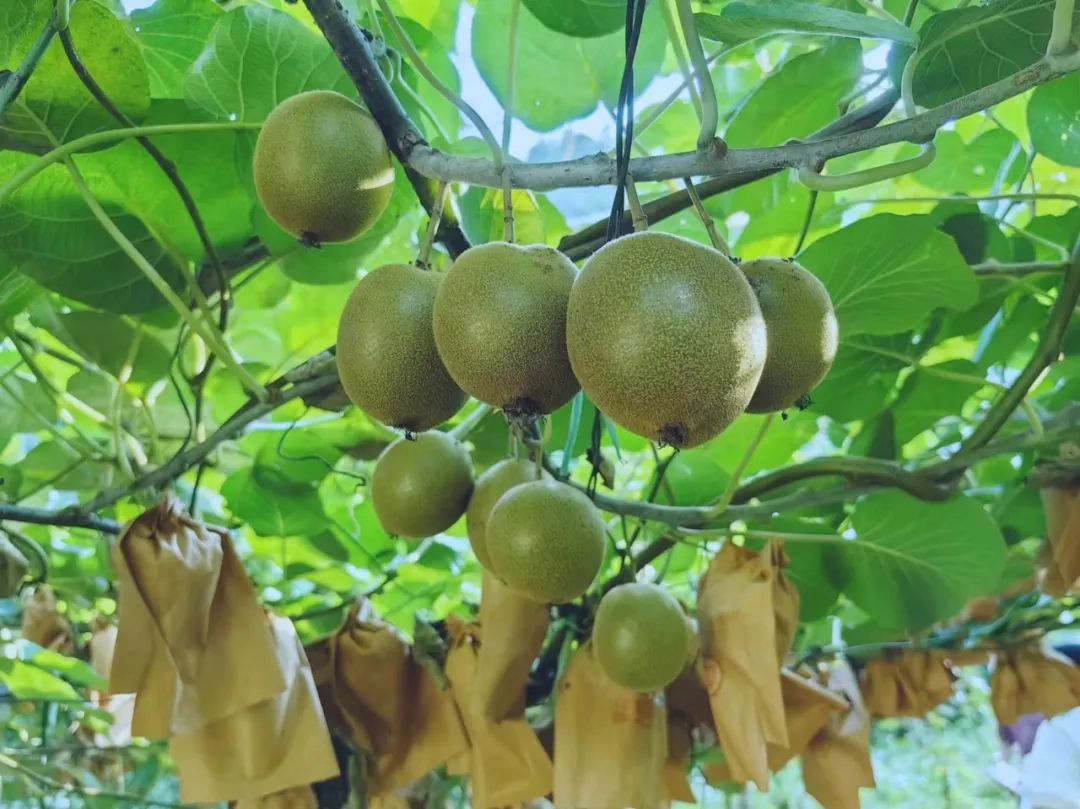 在田里,金衛小心翼翼地給每個獼猴桃套上土黃色紙袋,“等待淀粉的積累”。金衛說,果實在快速地長大,害蟲和小鳥都早已虎視眈眈。“套袋”能讓果實甜度增高,風味品質形成,“種獼猴桃就跟養子女一樣,要小心呵護。”