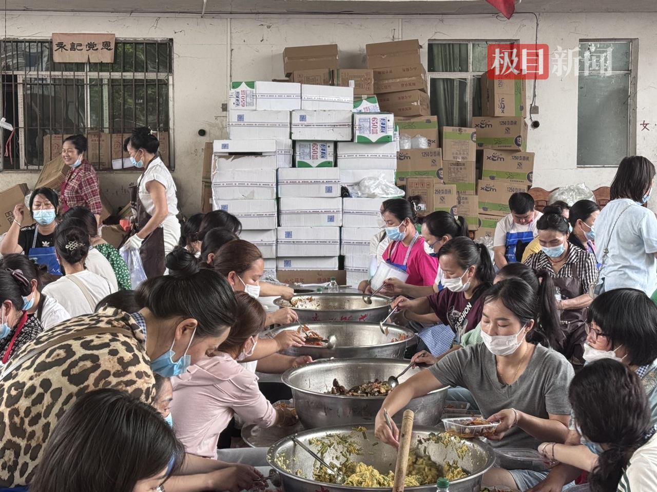 忠誠鎮黨委書記告訴極目新聞記者,在忠誠村合約食堂后勤保障點幫忙的都是當地村民,主力是各個村的村超足球隊、啦啦隊及村民志愿者。合約食堂每天為縣城受災地區保障數千份盒飯,忠誠鎮有五個這樣的后勤保障點,據統計29日忠誠鎮為前方送去了約一萬八千份盒飯。