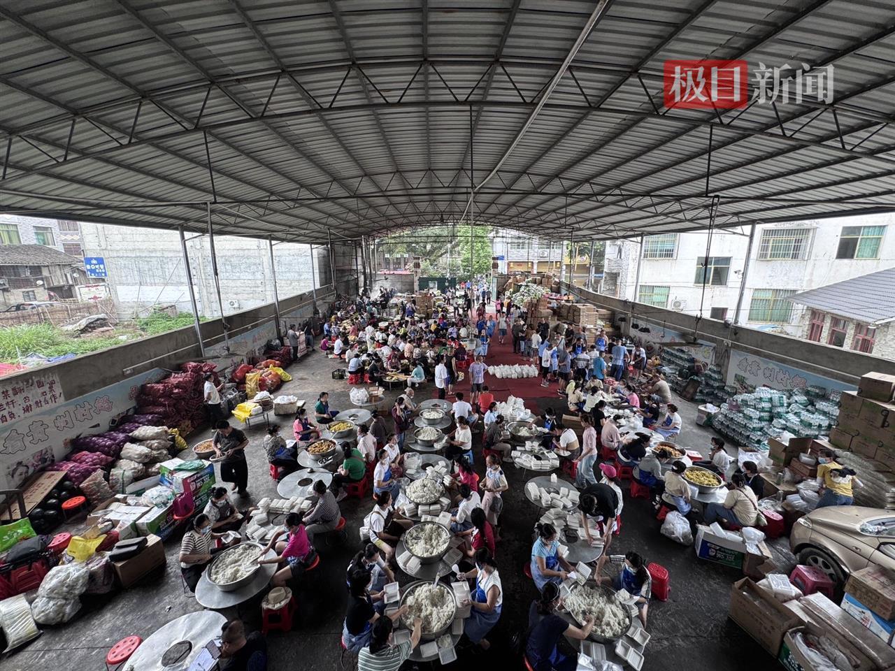 榕江縣忠誠鎮忠誠村合約食堂熱鬧非凡,周邊的村民自發趕到這里,洗菜、切菜、炒菜……原本是村民們用來辦酒席的場地,成了榕江縣城災后的后勤保障點之一。