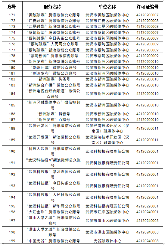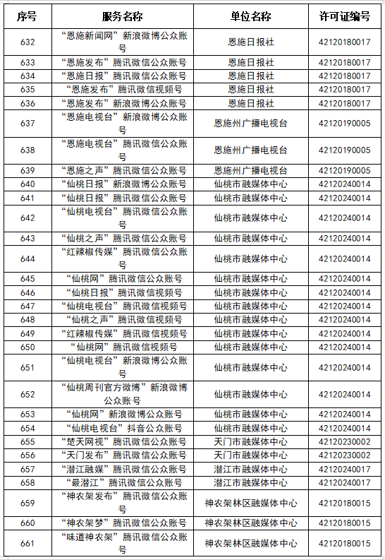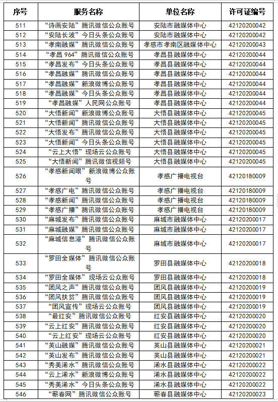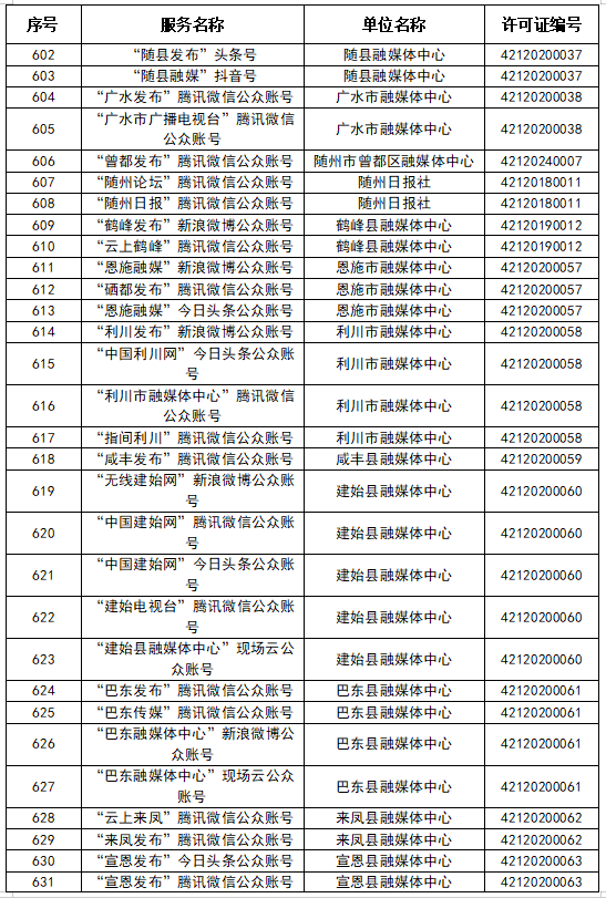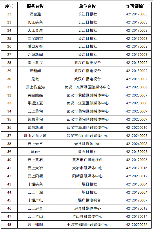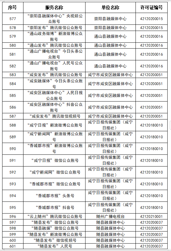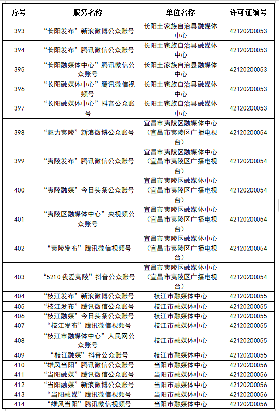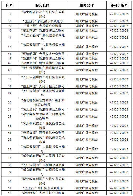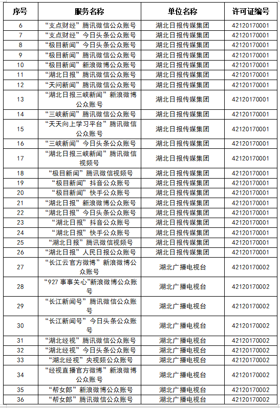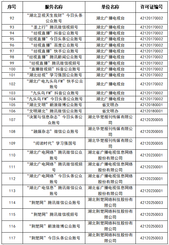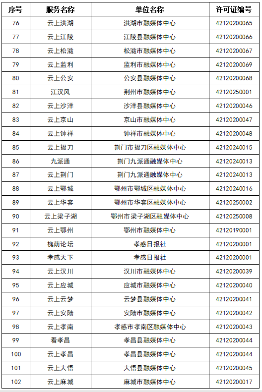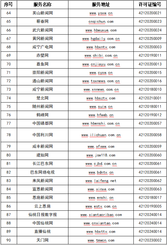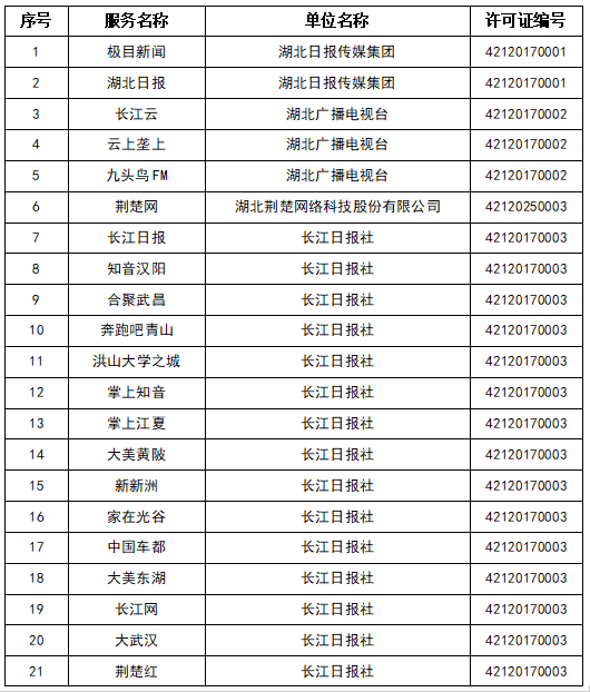 按照國(guó)家網(wǎng)信辦統(tǒng)一部署,湖北省網(wǎng)信辦依法組織開(kāi)展了屬地互聯(lián)網(wǎng)新聞信息服務(wù)許可證的申請(qǐng)、續(xù)辦和變更工作,現(xiàn)將湖北省130家互聯(lián)網(wǎng)新聞信息服務(wù)單位取得的相關(guān)許可信息予以公開(kāi),包括:互聯(lián)網(wǎng)站92個(gè),應(yīng)用程序138個(gè),論壇9個(gè),公眾賬號(hào)662個(gè),其他4個(gè),共計(jì)905個(gè)服務(wù)項(xiàng)。