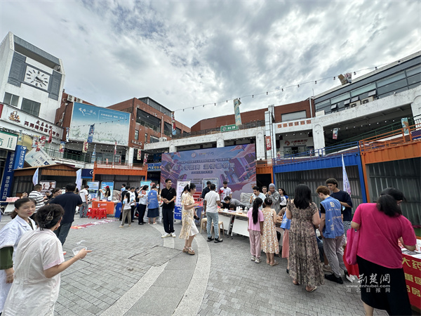 走進泛悅坊商圈,一個個煙火氣十足的攤位整齊擺放。不僅有中國移動帶來的免費手機貼膜、漢口銀行提供的免費更換三代醫(yī)保卡、南湖街社區(qū)衛(wèi)生服務中心開展的免費義診和健康咨詢等服務,還有湖工大國際學院的文化展覽攤位、點點探夢無人機的飛行互動展示等,讓居民在享受便民服務的同時感受到文化與科技的魅力。此外,還有眾多教育機構(gòu)推介培訓課程,以及反詐、禁毒等宣傳互動攤位。