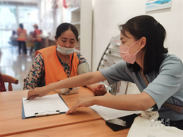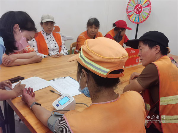 活動現場,專業醫護人員專注地為環衛工人測量血壓、血糖,細致地進行職業病篩查,還針對環衛工人常見的腰肌勞損、關節疼痛等問題開具個性化“健康處方”,給出專業治療和日常護理建議。