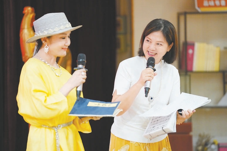 87版《紅樓夢》襲人扮演者袁玫(右)與妙玉扮演者姬玉誦讀“讀西廂”。北京日報記者 方非攝